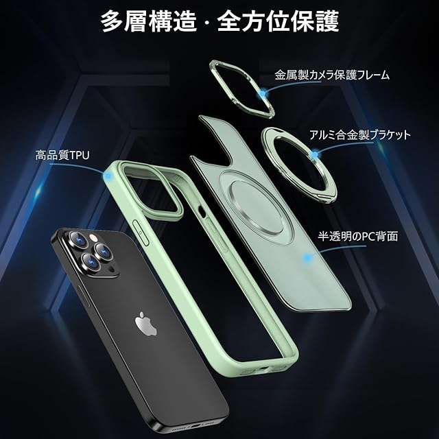 KWATUNG 代替品 ケース iphone 14 pro 用 ケース magsafe対応 ワイヤレス充電 耐衝撃 いphone14pro 用ケース magsafe対応 360°回転スタンド 縦横両対応 アイフォン14pro 用ケース マグネット搭載 iphone14プロ 用ケース 米軍MIL規格 スマホケース iphone 14 pro用 6.1インチ マット感 ライトグリーン | TREND DESIGN 家電専門店