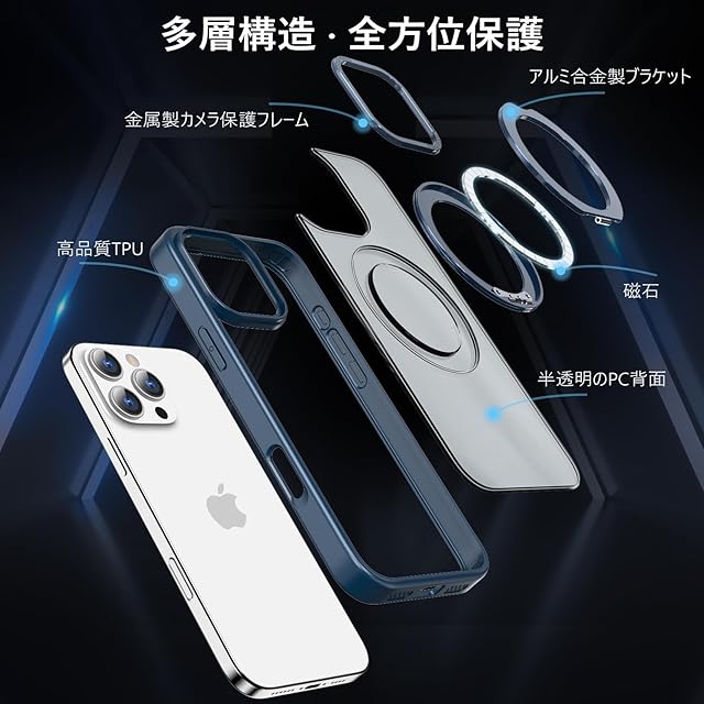 KWATUNG ケース iphone 16 pro max 用 ケース magsafe対応 ワイヤレス充電 アイホン16pro max 用ケース 落下防止 耐衝撃 いphone16pro max 用 ケース 360°回転スタンド 縦横両対応 iphone16プロマックス 用ケース マグネット搭載 防指紋 米軍MIL規格 6.9インチ 半透明 マット感 ブルー | TREND DESIGN 家電専門店