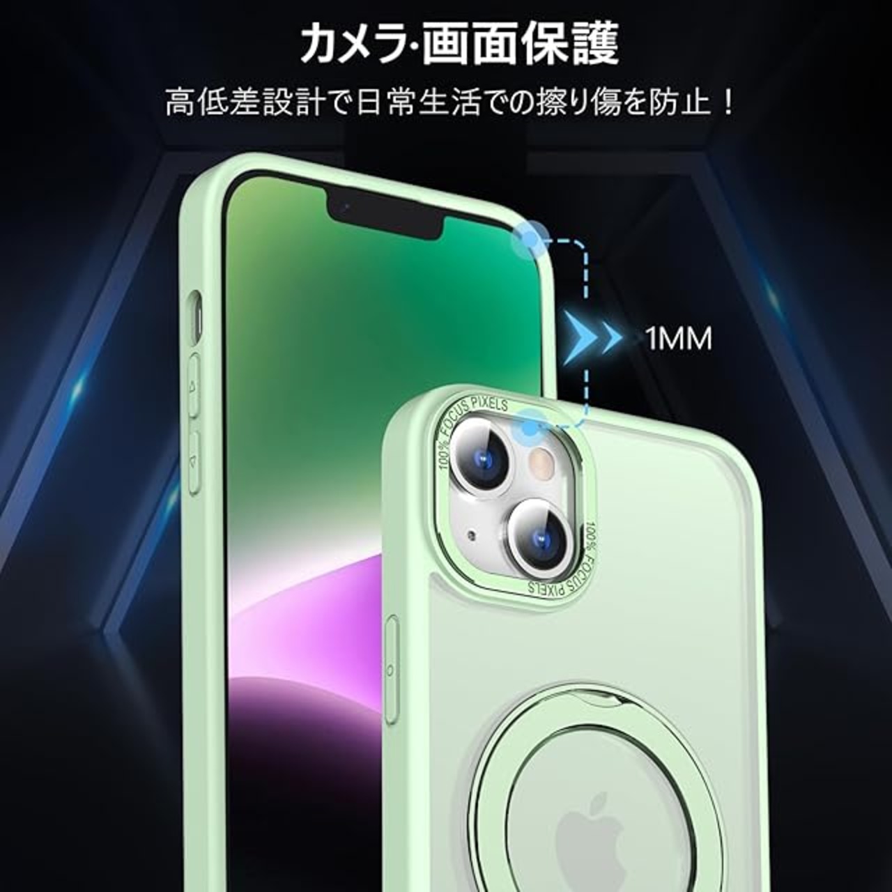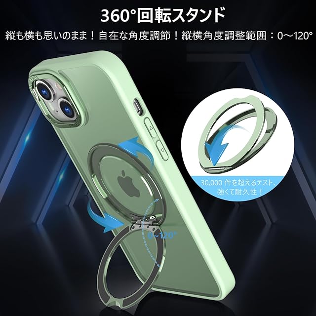 商品名:KWATUNG 互換品 ケース iphone14 用 ケース magsafe対応 ワイヤレス充電 いphone14 用ケース 耐衝撃 iphone13 用ケース magsafe対応 360°回転スタンド 縦横両対応 アイフォン14 用ケース マグネット搭載 アイフォン13用ケース 米軍MIL規格 スマホケース iphone 13 用 iphone 14 用 6.1インチ マット感 ライトグリーン