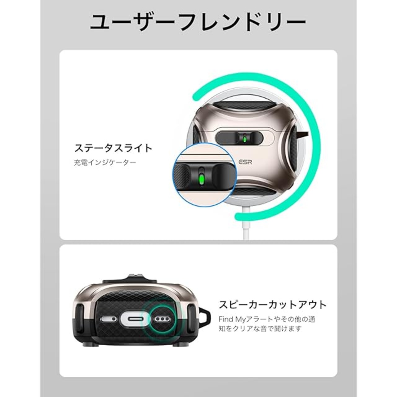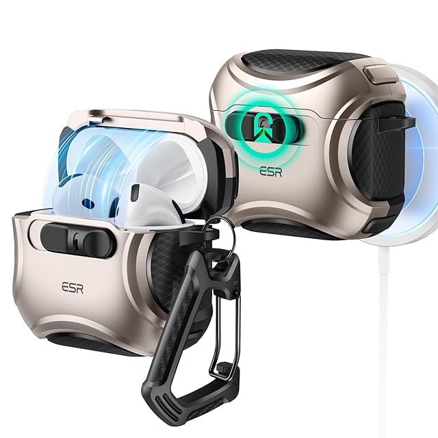 ESR AirPods 4 ケース(HaloLock) AirPods 第4世代 ケース(2024) (USB-C) 対応 MagSafe 対応 落下防止ロック イージーオープン Cyberシリーズ 砂漠チタン | TREND DESIGN 家電専門店