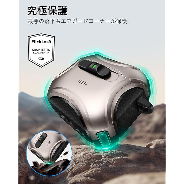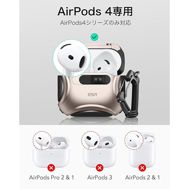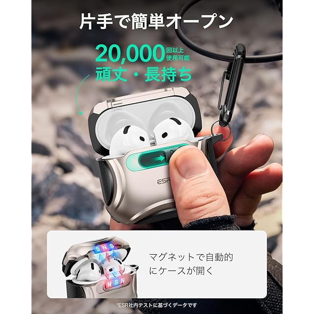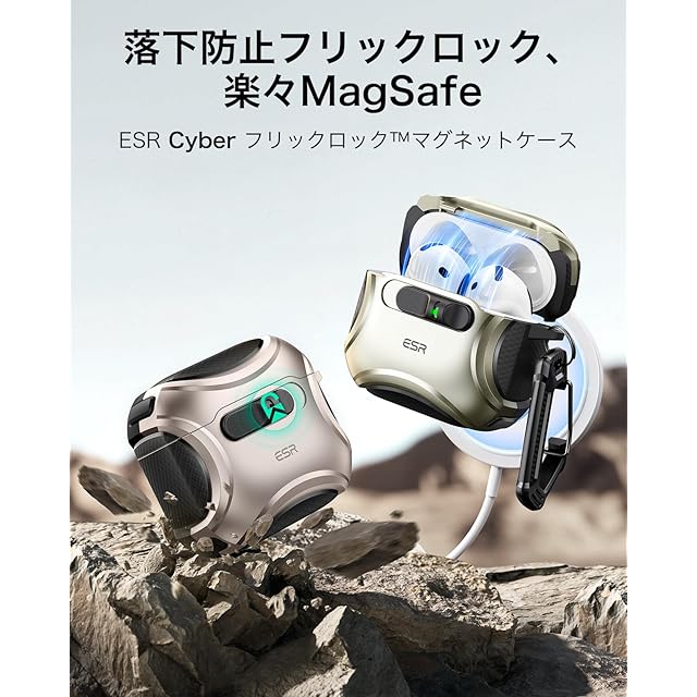 商品名:ESR AirPods 4 ケース(HaloLock) AirPods 第4世代 ケース(2024) (USB-C) 対応 MagSafe 対応 落下防止ロック イージーオープン Cyberシリーズ 砂漠チタン