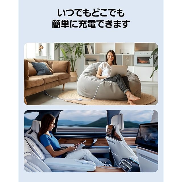【完全巻き取り式・耐久性抜群】 巻き取り式のUSB-C充電ケーブルは、引っ張るだけで簡単に収納でき、スペースを節約。絡まりやすいケーブルや散らかりやすい充電環境とは無縁です。50,000回以上の引っ張りテストに耐える耐久性を実現。いつでも安定したパフォーマンスを提供し、ケーブル交換は長期間不要です。