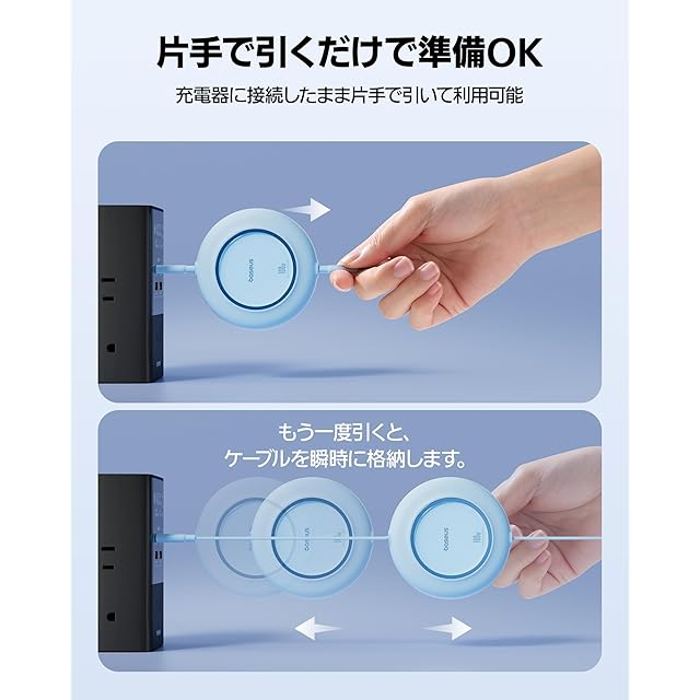 商品名:「VGP 2025受賞」Baseus 充電ケーブル 巻き取り式 USB-C ケーブル 急速充電 100W 5A PD対応 絡まない コンパクト リール式 iPhone16/15 Galaxy iPad Pro MacBook Pro 対応 Free2Pull 最大長さ1.5m ギャラクシーブルー