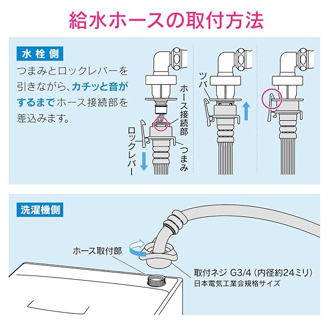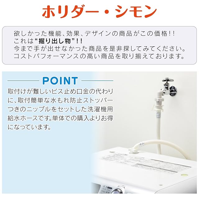 ガオナ ホリダー・シモン 自動洗濯機用 給水ホース 1.0m ワンタッチ給水ジョイントセット (水漏れ防止 安心ストッパーつき 取付ネジ2サイズ兼用 取付簡単) GA-LC009 | TREND DESIGN 家電専門店