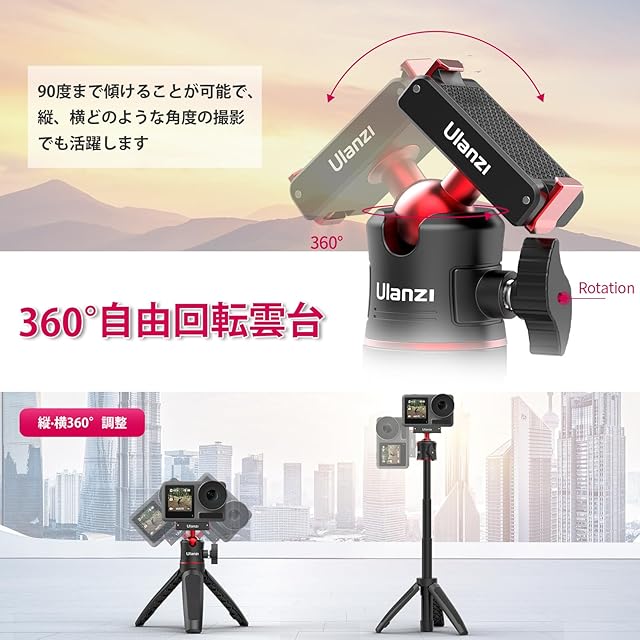 【360°自由回転なボール雲台】360°回転と120°チルト可能な自由雲台が付き、縦構図を撮ることもできます。素晴らしい運動写真やビデオを撮影する体験を楽しめます。携帯性にも優れているので、旅行などの撮影におすすめです。
