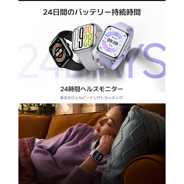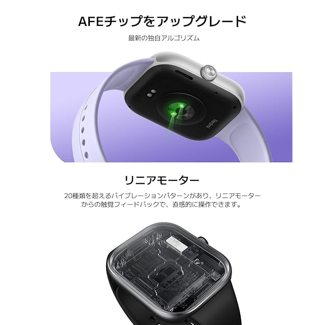 【心拍数と睡眠トラッキングの精度向上】新たに自社開発した心拍数アルゴリズムとAFEチップにより、心拍数モニタリング性能を5.2%向上。睡眠トラッキング性能も10%向上。さらに150以上のスポーツに対応し、あなたの運動をモニタリングします。いつでも包括的で正確なデータを取得し、ワークアウトを科学的かつ専門的に分析することができます。