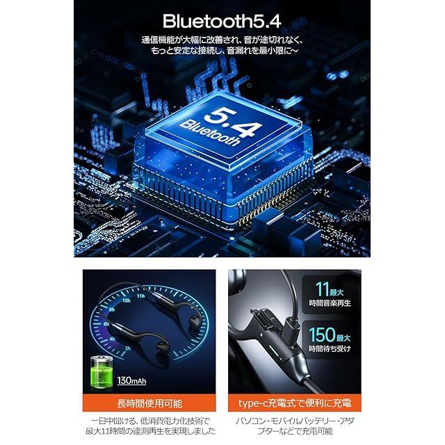 商品名:イヤホン 骨伝導イヤホン 骨伝導 ヘッドホン 【オープンイヤー型 超軽量モデル】 Bluetooth ヘッドホン 耳を塞がない Bluetooth 5.4 ワイヤレスヘッドホン マイク付き 快適な装着感 耳が疲れない 急速充電 在宅勤務 11時間使用可能 環境音聞き取り IPX7防水 こつでんどういやほん iPhone/Android適用 (ブラック)