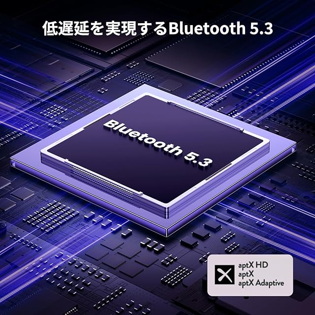 オーディオデコードをサポートします: キースイッチAPTX/APTXアダプティブ低遅延/APTXアダプティブ高品質/APTX HD/SBCをサポートします。対応するLEDライトが動作状態を表示します。低遅延aptX LLをサポートするQualcommチップセットを搭載し、安定したエネルギー効率の高い接続で高品質の24ビットダイナミックオーディオを伝送します。注意:使用するヘッドホンも同じ規格に対応している必要があります