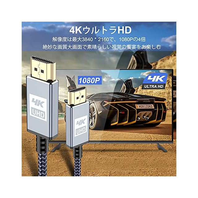 商品名:4K HDMI ケーブル 6m【ハイスピード アップグレード版】 HDMI 2.0規格HDMI Cable 4K 60Hz 対応 3840p/2160p UHD 3D HDR 18Gbps 高速イーサネット ARC hdmi ケーブル - 対応 パソコンの画面をテレビに映す Apple TV,PS5/PS4/PS3, PCモニター など適用 (グレー)