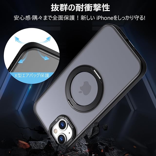 商品名:KWATUNG 互換品 ケース iphone14 用 ケース magsafe対応 ワイヤレス充電 いphone14 用ケース 耐衝撃 iphone13 用ケース magsafe対応 360°回転スタンド 縦横両対応 アイフォン14 用ケース マグネット搭載 アイフォン13用ケース 米軍MIL規格 スマホケース iphone 13 用 iphone 14 用 6.1インチ マット感 ブラック