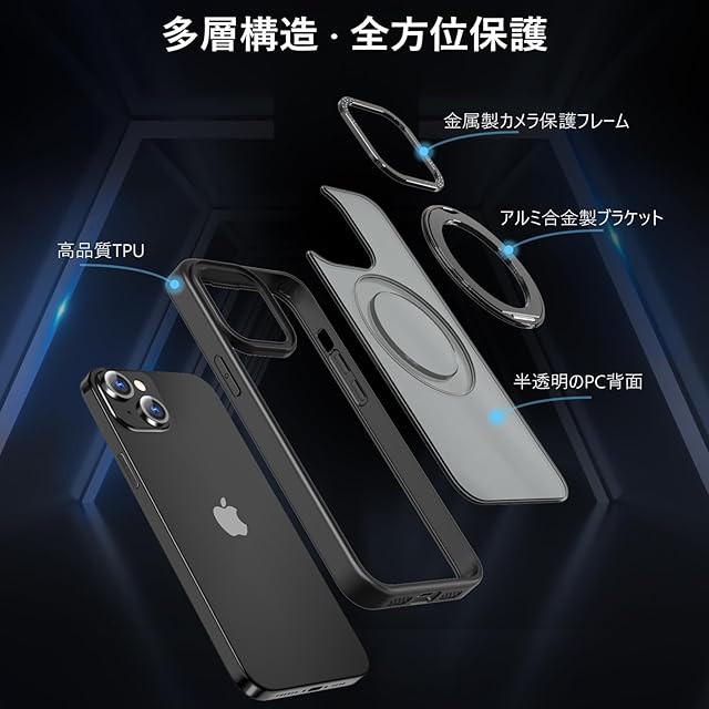 KWATUNG 互換品 ケース iphone14 用 ケース magsafe対応 ワイヤレス充電 いphone14 用ケース 耐衝撃 iphone13 用ケース magsafe対応 360°回転スタンド 縦横両対応 アイフォン14 用ケース マグネット搭載 アイフォン13用ケース 米軍MIL規格 スマホケース iphone 13 用 iphone 14 用 6.1インチ マット感 ブラック | TREND DESIGN 家電専門店