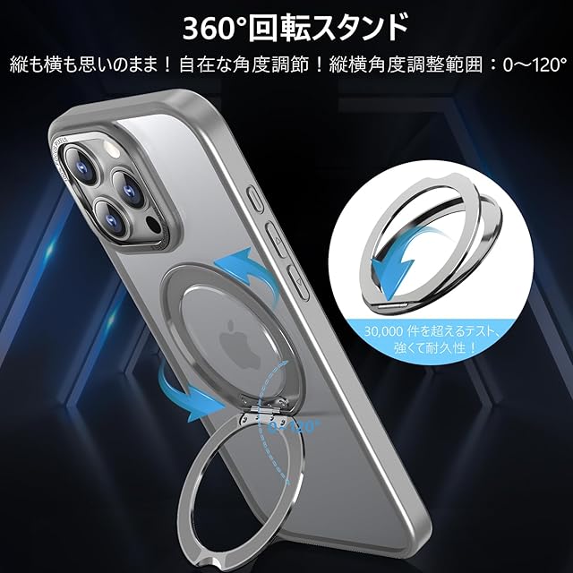 KWATUNG ケース iphone 16 pro max 用 ケース magsafe対応 ワイヤレス充電 アイホン16pro max 用ケース 落下防止 耐衝撃 いphone16pro max 用 ケース 360°回転スタンド 縦横両対応 iphone16プロマックス 用ケース マグネット搭載 防指紋 米軍MIL規格 6.9インチ 半透明 マット感 チタングレー | TREND DESIGN 家電専門店