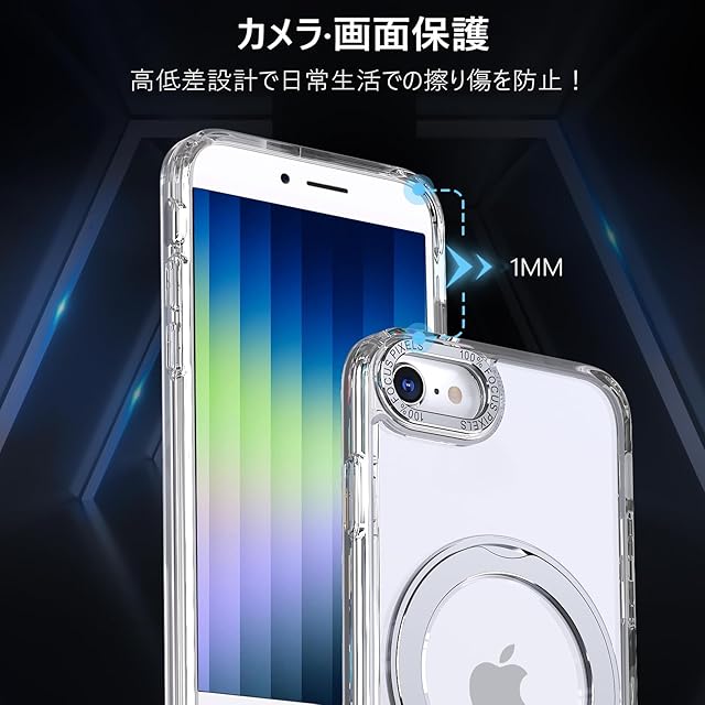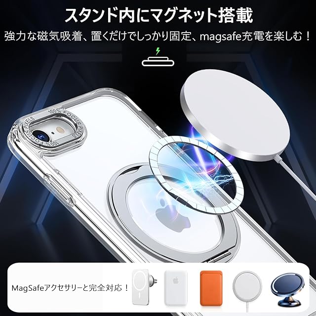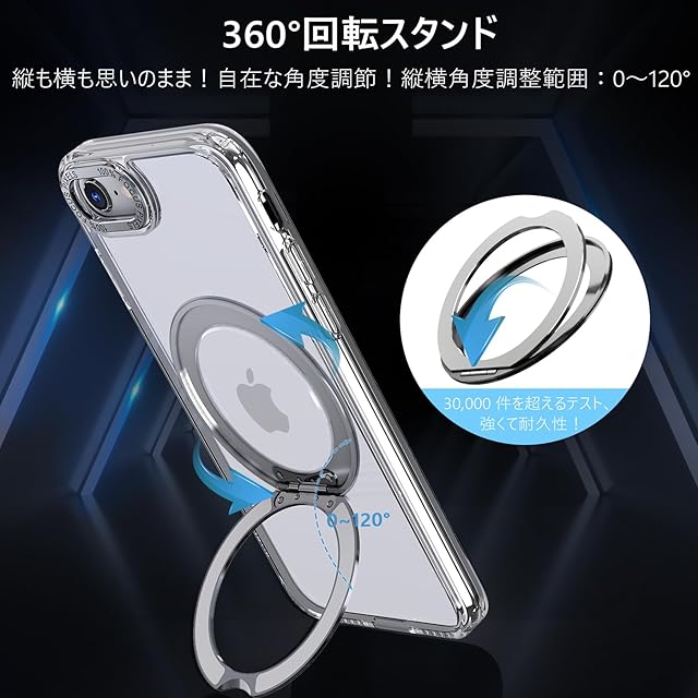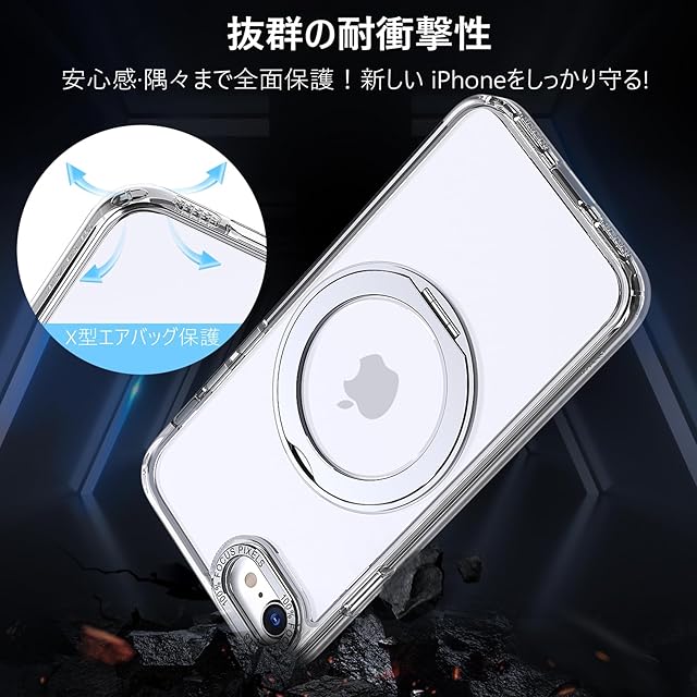 商品名:【透明な輝き】KWATUNG ケース iphone se3 用ケース iphone se2 用ケース magsafe対応 360°回転スタンド 縦横両対応 リング マグネット搭載 アイフォン SE3 SE2 8 7用ケース 防指紋 米軍MIL規格 耐衝撃 iPhone SE 第3世代 用ケース iPhone SE 第2世代 用ケース iPhone8/iPhone7 用ケース 透明 クリア