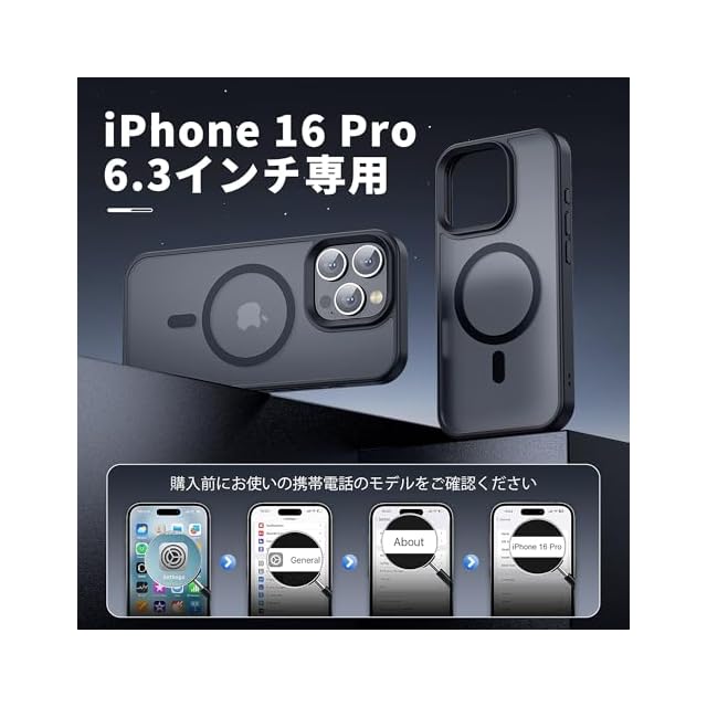 iPhone 16 Pro 用 ケース MagSafe対応 ワイヤレス充電 磁気ケース 耐衝撃性 米軍MIL規格の保護 傷に強い背面 6.3インチ