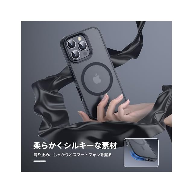 商品名:【米軍規格・MagSafe対応】Gtsoho iPhone 16 Pro ケース 用 ケース 半透明 マグネット搭載 ワイヤレス充電 耐衝撃 耐久性 全面保護 黄ばみなし ストラップホール付き イフォン 16 Pro 用 カバー マグセーフ対応 ブラック