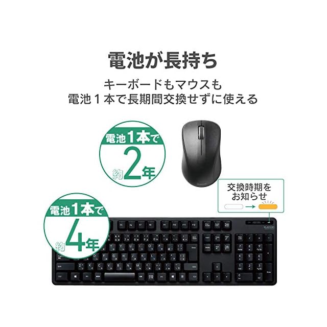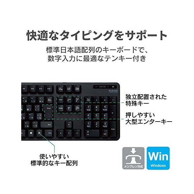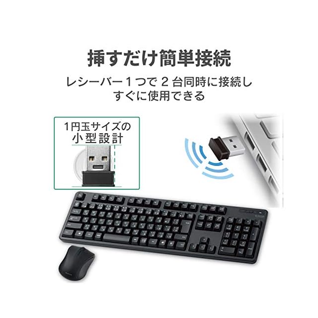 商品名:エレコム キーボード 【マウスセット】 ワイヤレス (レシーバー付属) メンブレン フルキーボード ブラック TK-FDM106MBK