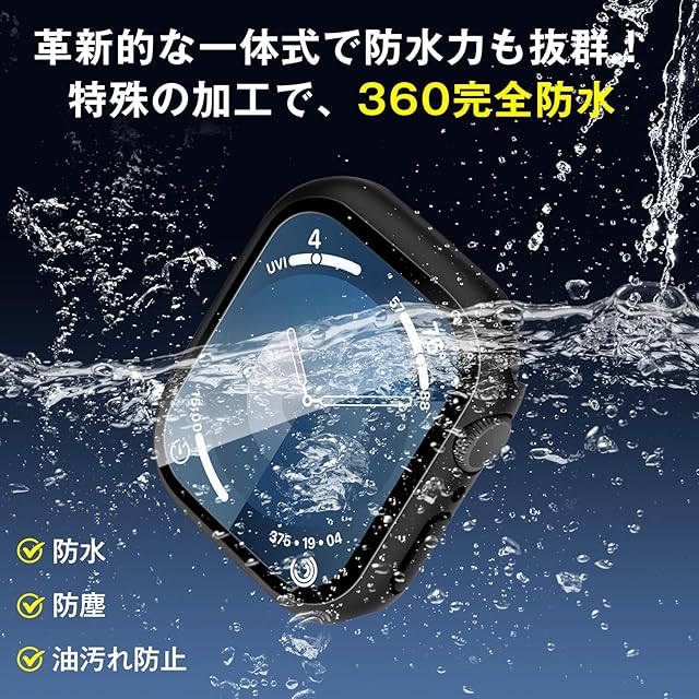 【防水·防塵】Apple Watchケース特殊加工による防水機能により、シーリングリング内蔵したApple Watchケース、Apple Watchの画面にぴったりとフィットし、水の浸入を防ぎます。シャワー、手洗い、発汗、運動、雨など、日常の使用に適しています!※【重要】アップルウォッチ本来の防水性能を向上させるものではありません。裏面の接着剤に密着させて防水効果を高めるために、画面の周りの端に沿って、指の腹で繰り返して押さえてください。