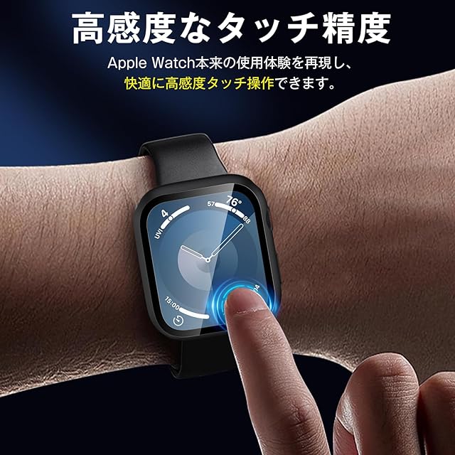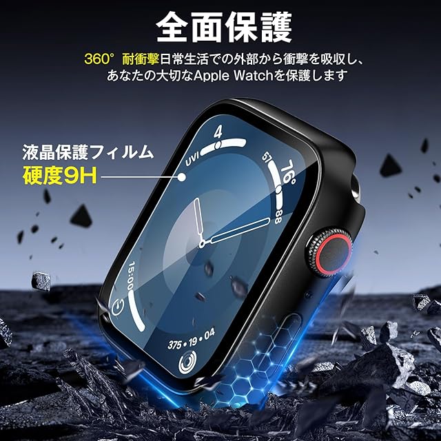 【全面保護·9Hの硬度】強化ガラスフィルムとPCフレームまた防水リングの三重構造仕組みを採用し、最高レベルの9H硬度、 盛り上がったエッジガードが、スクリーンを硬い面にぶつけないように保護します、Apple Watch保護機能を更にアップ!