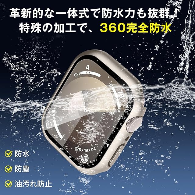 【防水·防塵】Apple Watchケース特殊加工による防水機能により、シーリングリング内蔵したApple Watchケース、Apple Watchの画面にぴったりとフィットし、水の浸入を防ぎます。シャワー、手洗い、発汗、運動、雨など、日常の使用に適しています!※【重要】アップルウォッチ本来の防水性能を向上させるものではありません。裏面の接着剤に密着させて防水効果を高めるために、画面の周りの端に沿って、指の腹で繰り返して押さえてください。