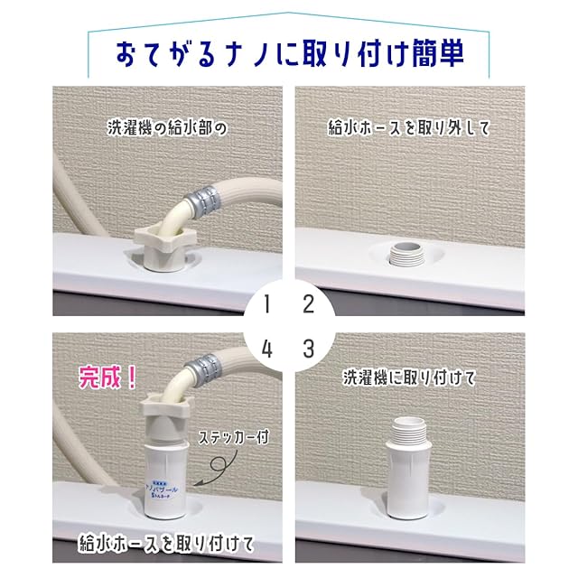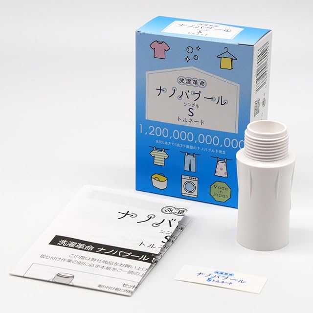 お求めやすいナノバブールが登場 今お使いの洗濯機がナノバブル洗濯機に変身 1兆2千億個以上の微細な ナノバブル(ウルトラファインバブル)を生み出す画期的な洗濯機用アタッチメントです ※水10Lあたり 「洗剤や柔軟剤との相乗効果」により、優れた洗浄力と消臭力を発揮します 部屋干しによる生乾きのニオイ防止にも効果的 タテ型・ドラム式洗濯機どちらにも使用可能 取り付けカンタン どのメーカーの洗濯機にも装着可能です 材質 本体・キャップ:ポリアセタール ナノバブル発生器:ポリプロピレン 製品サイズ:3.5x3.5x7.4cm 製品重量:46g 日本製 ※全自動洗濯機用 ※二層式洗濯機には使用出来ません