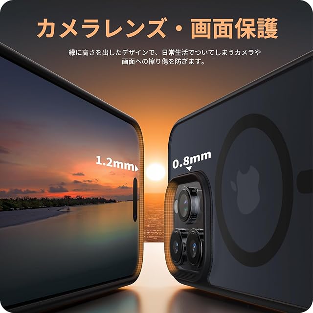 【細部までも保護・安心感】カバーの縁はスマホの画面より1.2mm高く、カメラレンズより0.8mm高い仕様です。併用の保護ガラスフィルムで平置きしても画面は接触しません。細部までの保護も配慮され、より一層な安心感を与えられます。