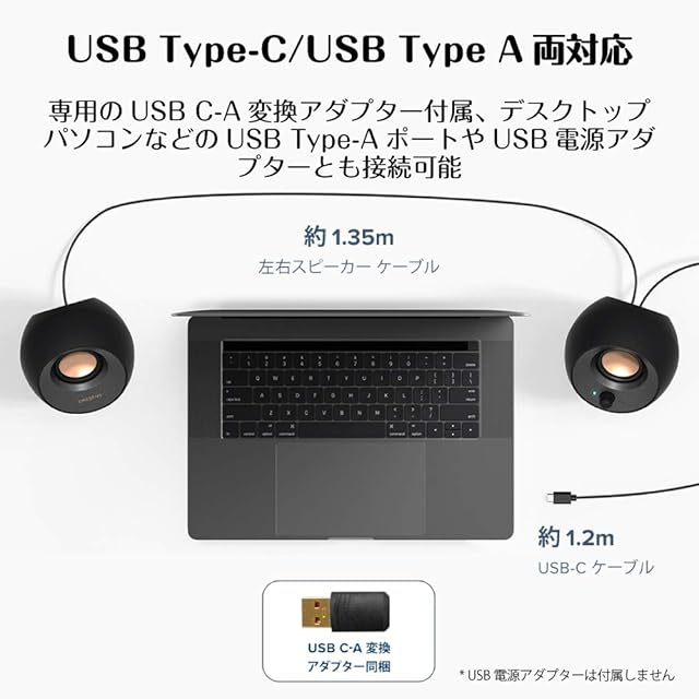 【高出力サウンド】コンパクトなボディながらUSB Type-Cに対応し、8W RMS(ピーク出力16W)までの出力が可能