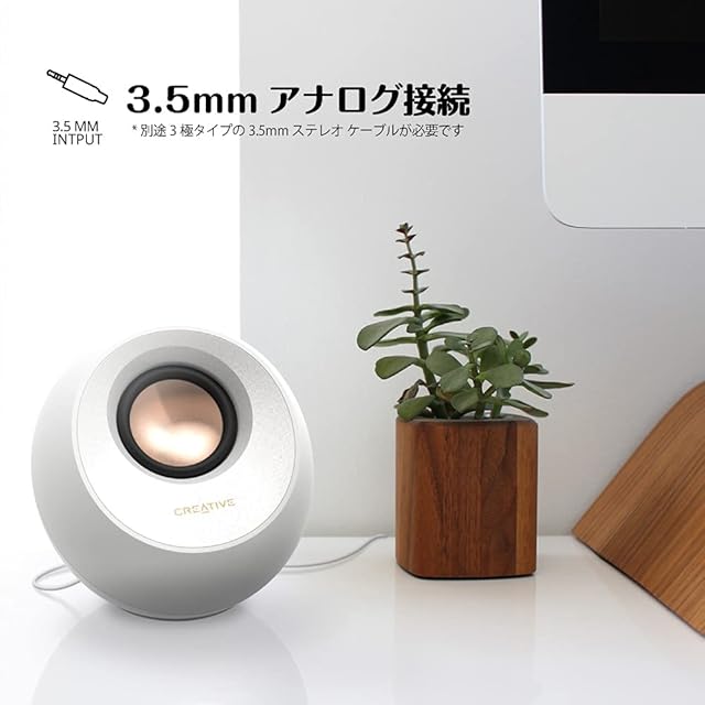 商品名:Creative Pebble V3 ホワイト 入力切替(USBオーディオ/Bluetooth/3.5mmピン入力) Bluetooth 5.0搭載 8W RMS ピーク出力16W USB Type-C/Type-A アクティブ スピーカー SP-PBLV3-WH