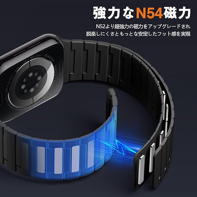 【N54 磁気強化】このアップルウォッチバンドの磁気バックルは強化・アップグレードされており、通常のアップルウォッチベルトよりも強力な磁気グリップを備えています。脱落する心配はありません。同時に、マグネットロックストラップにより、長さ調節も簡単に行え、お客様の手首のサイズに合わせて調整できます。