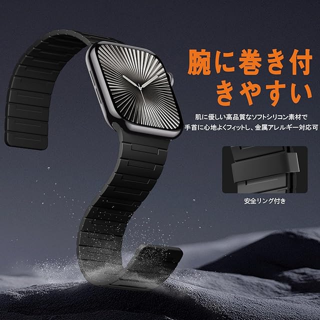 商品名:[Maledan]アップルウォッチ用 バンド マグネット シリコン 簡単装着 N54強磁力 交換ベルト 手首馴染み 42mm 44mm 45mm 46mm 49mm 38mm 40mm 41mm Compatible with Series Ultra/Ultra2/10/9/8/7/6/SE/5/4/3/2/1対応 通気性 長さ自由調節 ビジネス カジュアル