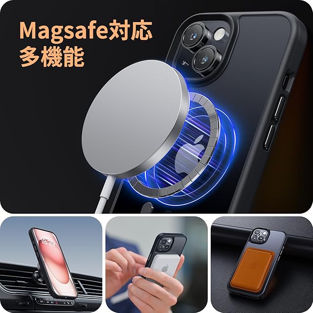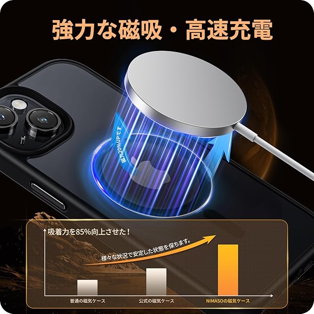 NIMASO iPhone15用 ケース MagSafe マグネット搭載 マグセーフ対応 カバー 滑り止め マット仕上げ 全面保護 耐衝撃 米軍MIL規格取得 いphone15 ケース magsafe ワイヤレス充電 ストラップホール付き アイフォン15対応(6.1インチ) スマホケース ブラック (黒羽シリーズ) NSC23H719 | TREND DESIGN 家電専門店