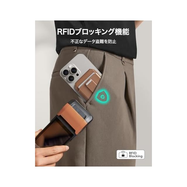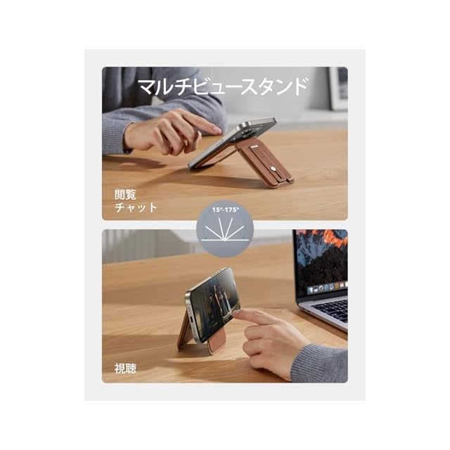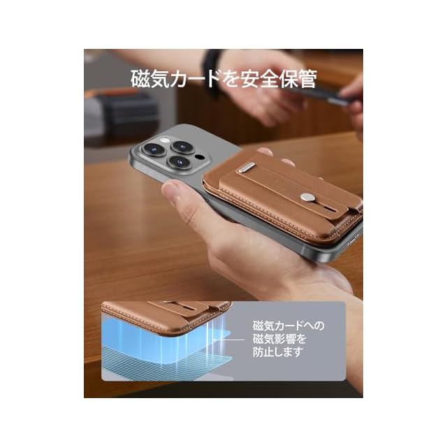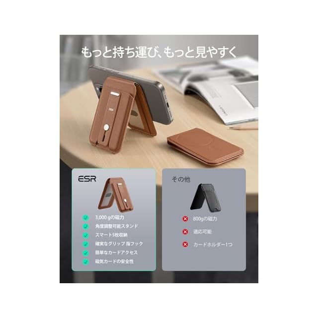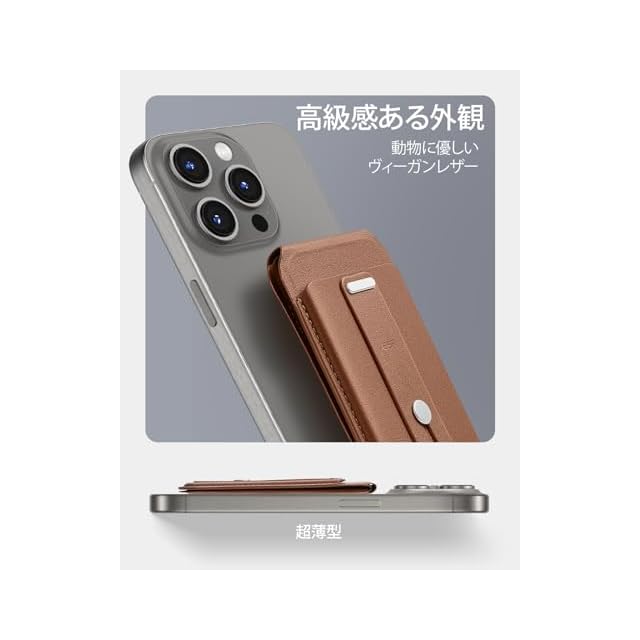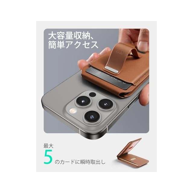 商品名:[ESR] 新登場 収納量アップ MagSafe カードケース 5枚カード収納 RFIDブロッキング ホルダー ス マホスタンド MagSafe対応ウォレット 調節可能なスタンド 財布 iPhone 16/15/14/13/12専用磁気ウォレット iPhone 13/12 mini非対応 ヴィーガンレザー Find My「探す」非対応 ブラウン