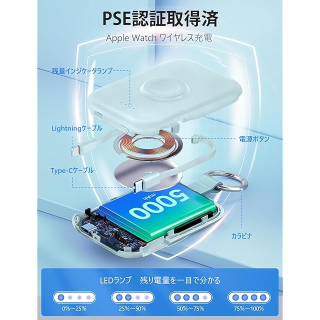 【新色登場】RORRY apple watch 充電器 モバイルバッテリー 5000mAh 2本ケーブル内蔵 【iPhone用+Type-Cケーブル】 アップルウォッチ対応 ワイヤレス充電 同時充電 最大4台同時充電 For Apple Watch ultra2/9/8/7全シリーズに対応 軽量 小型 コンパクト 持ち運び/PSE認証済 for iPhone 15/14/Android ブルー | TREND DESIGN 家電専門店
