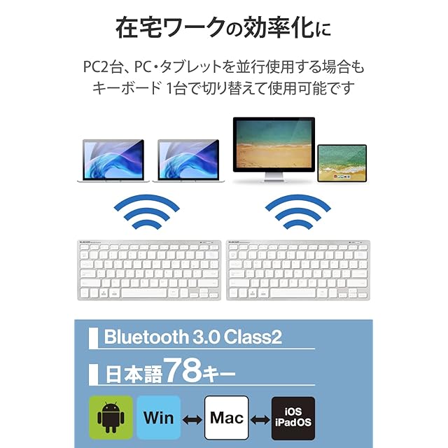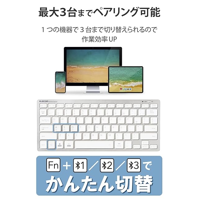 商品名:エレコム Bluetooth マルチペアリング ミニキーボード パンタグラフ式 軽量・薄型 3台同時ペアリング mac OS/iPad OS/Window OS対応 シルバー TK-FBP102SV/EC