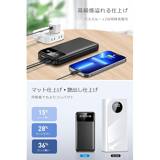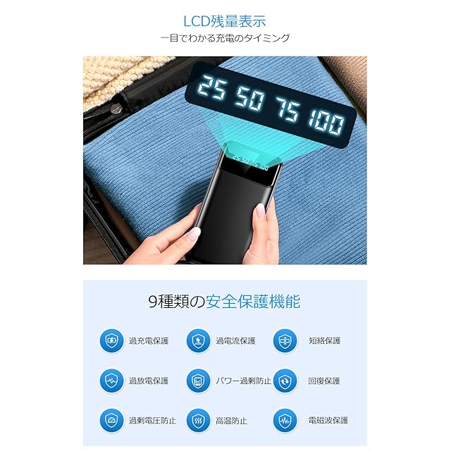 【安全保護機能搭載】高性能ICチップと安全装置搭載、バッテリーが過充電・過放電・過熱・ショートの際に、自動的に電流を遮断して充電停止になるので、安心して使用できます。パススルー充電にも対応しますが、長時間モバイルバッテリーを充電しながら使用すると、バッテリーに負荷がかかりすぎることがあるので、パススルーは長時間・頻繁に使用しないでください。