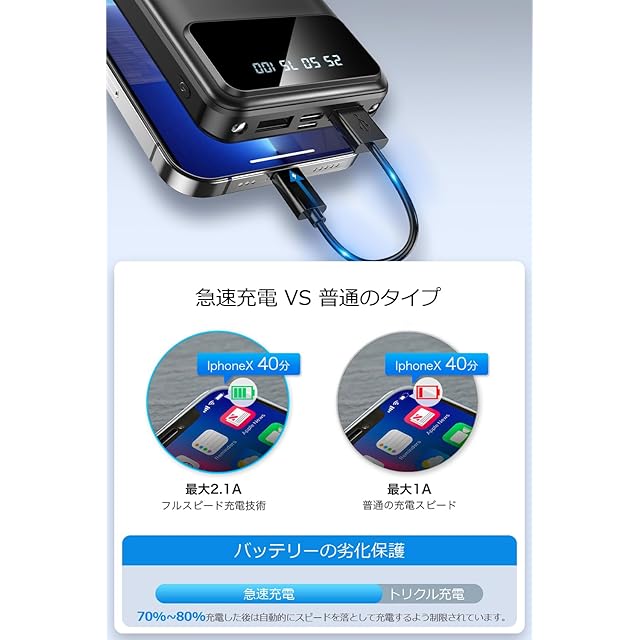 商品名:モバイルバッテリー 【40000mAh大容量 二台同時充電】 2.1A出力 急速充電 スマホ 充電器 2つUSB-A出力ポート LCD残量表示 携帯便利 バッテリー 2WAY蓄電 LEDライト付き 携帯充電器 iOS/Android各種他対応 停電対策 アウトドア/旅行/出張/地震/災害/緊急用 防災グッズ PSE技術基準適合 (ダーク)