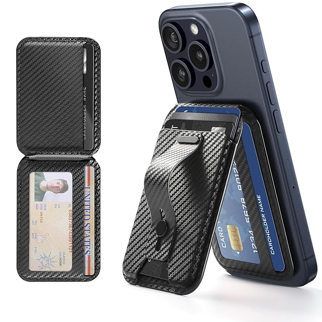 [ESR] 新登場 収納量アップ MagSafe カードケース 5枚カード収納 RFIDブロッキング ホルダー ス マホスタンド MagSafe対応ウォレット 調節可能なスタンド 財布 iPhone 16/15/14/13/12専用磁気ウォレット iPhone 13/12 mini非対応 ヴィーガンレザー Find My「探す」非対応 ブラックカーボンファイバー | TREND DESIGN 家電専門店
