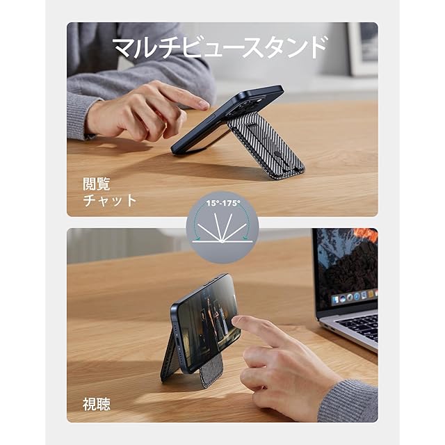 このマグネットウォレットスタンドは強力なマグネットで作られており、公式マグネットウォレットよりも275%強力な磁気ロックを提供し、携帯電話にしっかりと取り付けることができます。 万能なスタンドは、縦向きと横向きの両方をサポートしながら、15°から175°の間で自由に調整でき、手を解放して映画を見たり、家族に追いつくのに最適な角度を見つけることができます。 3つの個別のカードスロットで銀行カードに簡単にアクセスでき、透明なウィンドウでIDをフラッシュして保管するのに最適です。