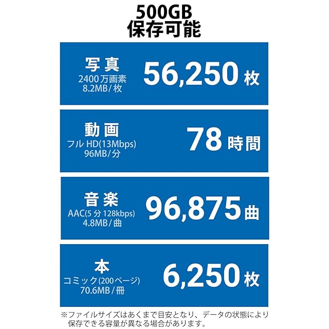 読み込み最大500MB/s、書き込み最大480MB/sの高速データ転送を実現しています。