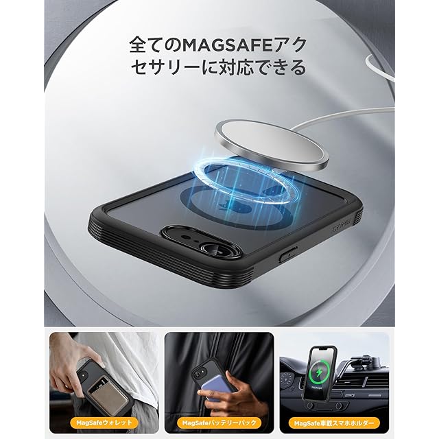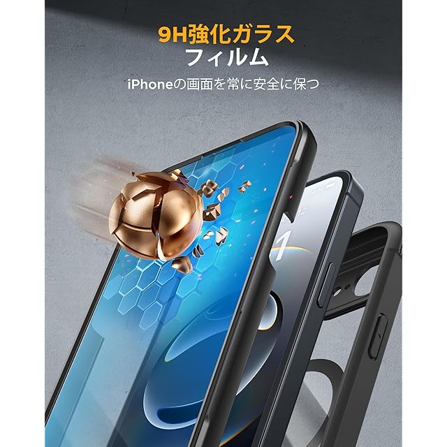 商品名:Miracase iPhone 16E ケース MagSafe対応 あいふおん16e スマホケース 2025 9H強化ガラス 6.1インチ フルカバー 360°全身保護 ワイヤレス充電対応 黒
