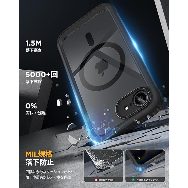 【使い易い】iPhone 16e (6.1インチ)ケースとして、適正なサイズ設計デザインにより、ワイヤレス充電、サイドボタン操作、スクリーンタッチなどもスムーズに扱えます。着脱簡単、右下隅からケースを分離します。二重フィルムはタッチ不良を起こすので、別のガラスフイルムを貼り付けないでください。