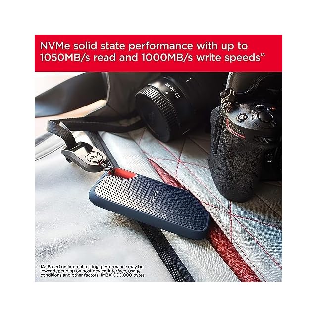 ポータブルで大容量のドライブで、最大1050MB/秒の読み取り速度と1,000MB/秒の書き込み速度でNVMeソリッドステートパフォーマンスを実現(1) (内部テストに基づき、ホストデバイスやその他の要因によってはパフォーマンスが低下する場合があります。 1MB=1,000,000バイト。)