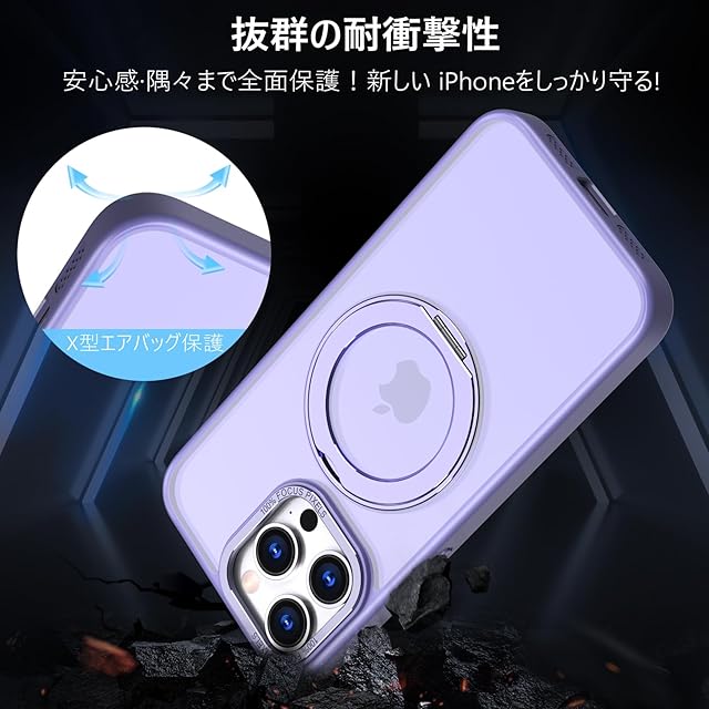 商品名:KWATUNG 代替品 ケース iphone 14 pro 用 ケース magsafe対応 ワイヤレス充電 耐衝撃 いphone14pro 用ケース magsafe対応 360°回転スタンド 縦横両対応 アイフォン14pro 用ケース マグネット搭載 iphone14プロ 用ケース 米軍MIL規格 スマホケース iphone 14 pro用 6.1インチ マット感 ライトパープル