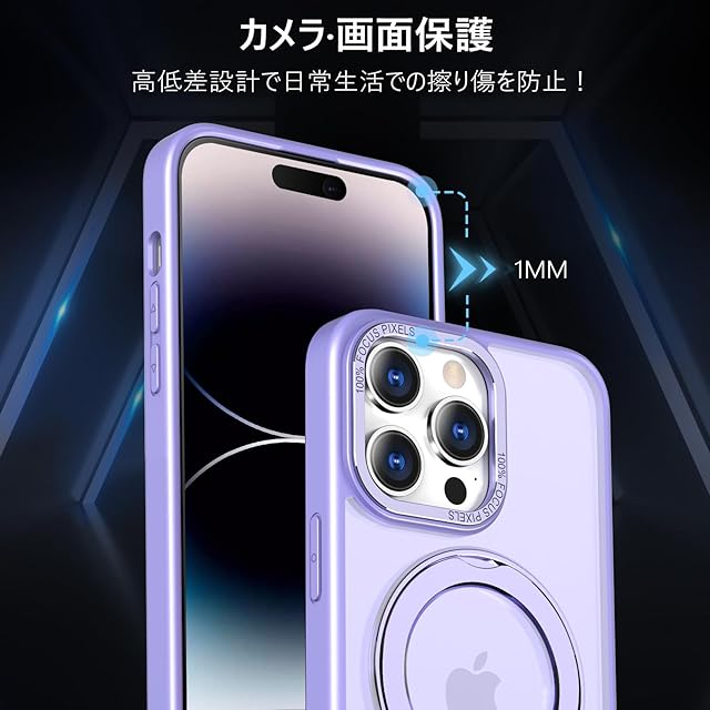 KWATUNG 代替品 ケース iphone 14 pro 用 ケース magsafe対応 ワイヤレス充電 耐衝撃 いphone14pro 用ケース magsafe対応 360°回転スタンド 縦横両対応 アイフォン14pro 用ケース マグネット搭載 iphone14プロ 用ケース 米軍MIL規格 スマホケース iphone 14 pro用 6.1インチ マット感 ライトパープル