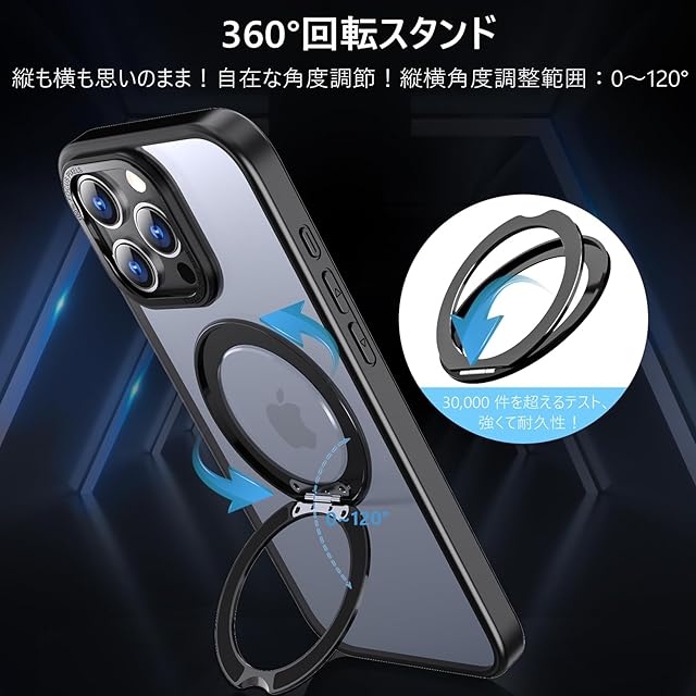 商品名:KWATUNG ケース iphone 16 pro 用 ケース magsafe対応 ワイヤレス充電 iphone16pro 用ケース 耐衝撃 いphone16pro 用ケース 360°回転スタンド 縦横両対応 アイフォン16プロ用ケース マグネット搭載 アイフォン16pro 用ケース 防指紋 米軍MIL規格 iphone16プロ 用ケース 6.3インチ 半透明 マット感 ブラック