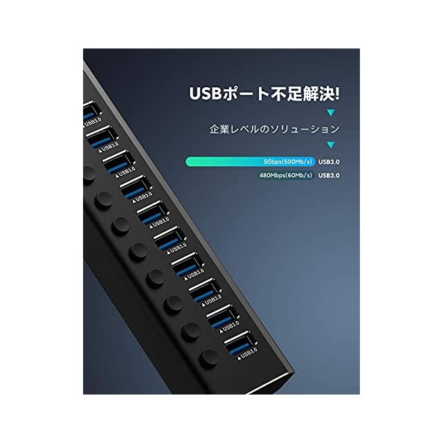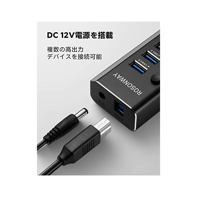 商品名:USB3.0ハブ 電源付き ROSONWAY 10ポート USBハブ アルミ製で アップ 5Gbps高速転送 セルフパワー USB拡張 独立スイッチ付 12V/3A ACアダプタ付き(RSH-A10)