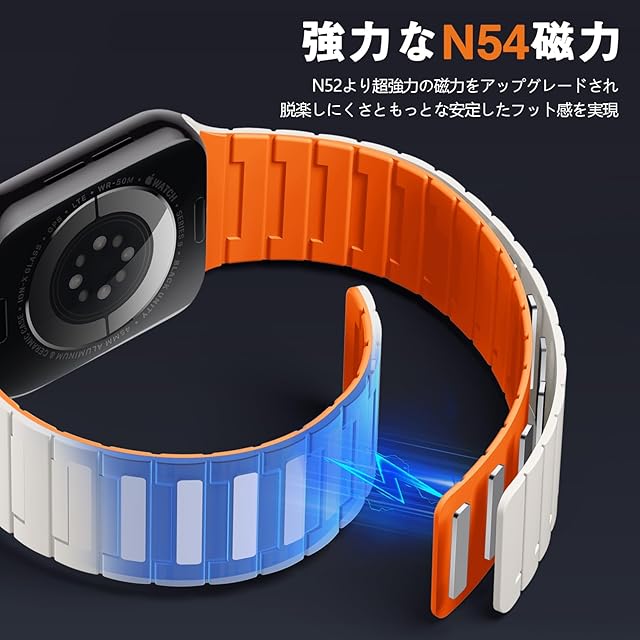【N54 磁気強化】このアップルウォッチバンドの磁気バックルは強化・アップグレードされており、通常のアップルウォッチベルトよりも強力な磁気グリップを備えています。脱落する心配はありません。同時に、マグネットロックストラップにより、長さ調節も簡単に行え、お客様の手首のサイズに合わせて調整できます。