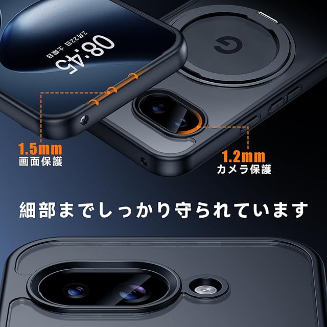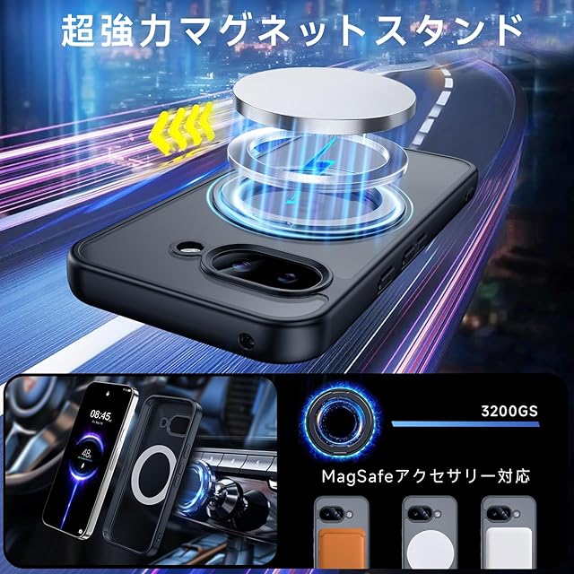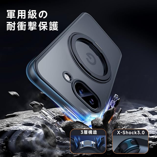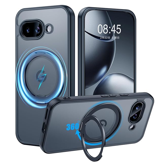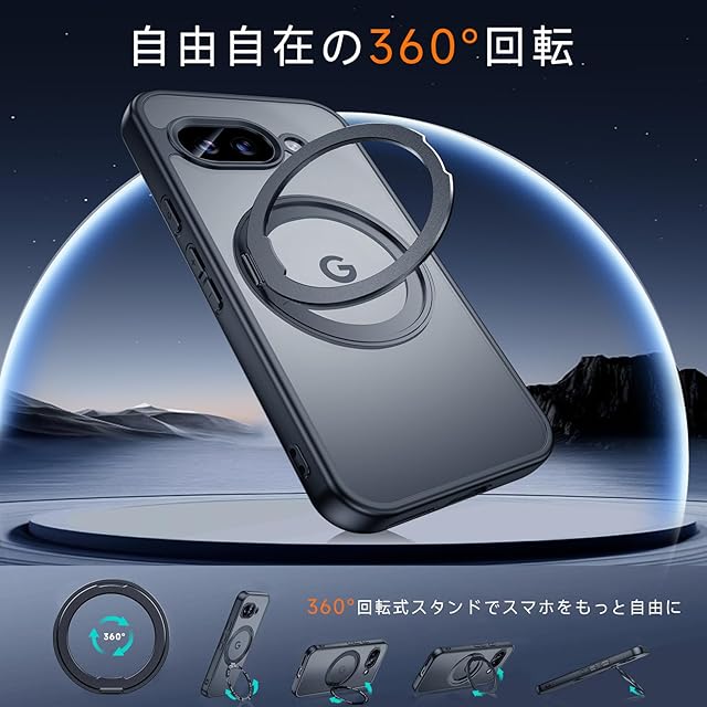 商品名:【米軍MIL規格・Magsafe対応】Google Pixel 9a 用 ケース MagSafe対応 リング 360°回転スタンド機能 縦横両対応 半透明 黄ばみ防止 ワイヤレス充電 レンズ保護 耐衝撃 携帯カバー グーグルピクセル9a カバー 6.3 インチ マグネット搭載 車載ホルダー マグセーフ対応 おしゃれ (ブラック)