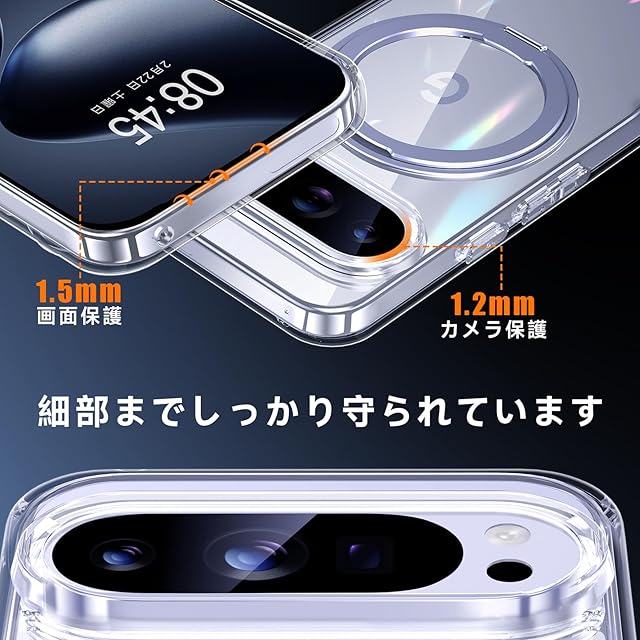 【米軍MIL規格準拠・高耐衝撃性能】米国国防総省の耐衝撃試験「MIL-STD-810G」に準拠し、耐衝撃性能が従来比20倍アップ!スマホの落下時に特に衝撃を受けやすい四隅には、衝撃を分散するクッション構造を採用。また、ケースの側面には柔軟性の高いTPU素材を使用し、耐衝撃性を強化。Google Pixel 9 / 9 Proをしっかりと守ります。