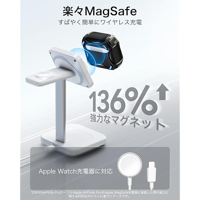 【MagSafe対応】:ケース背面の強力なマグネットがMagSafe充電器を確実に磁気吸着ロックし、瞬間吸着のワイヤレス充電をイヤホンで楽しむことができます。
