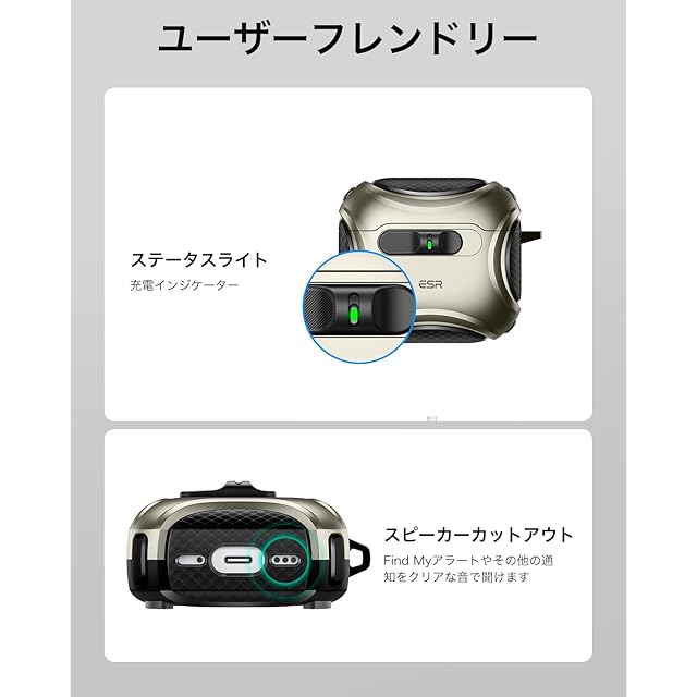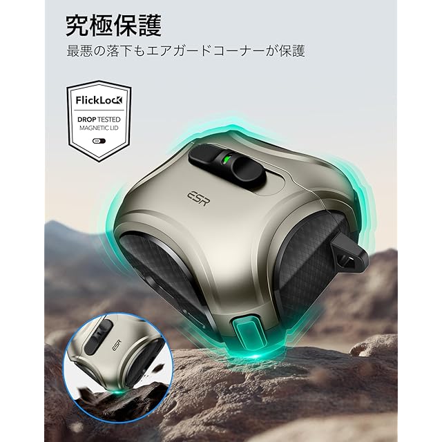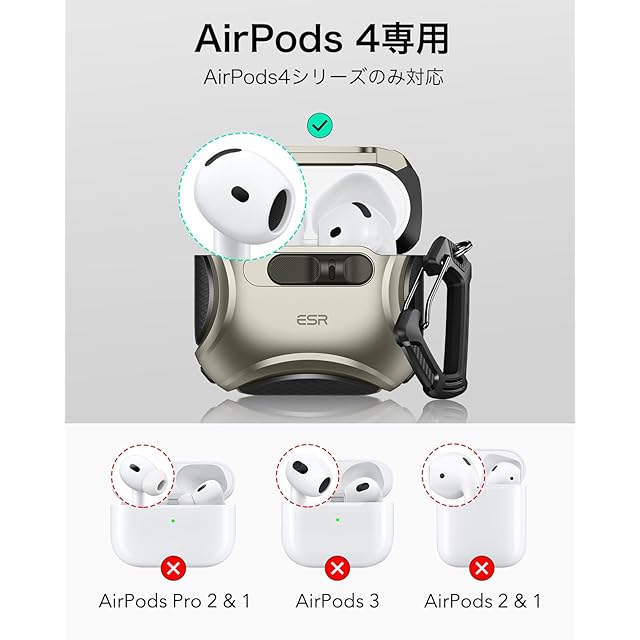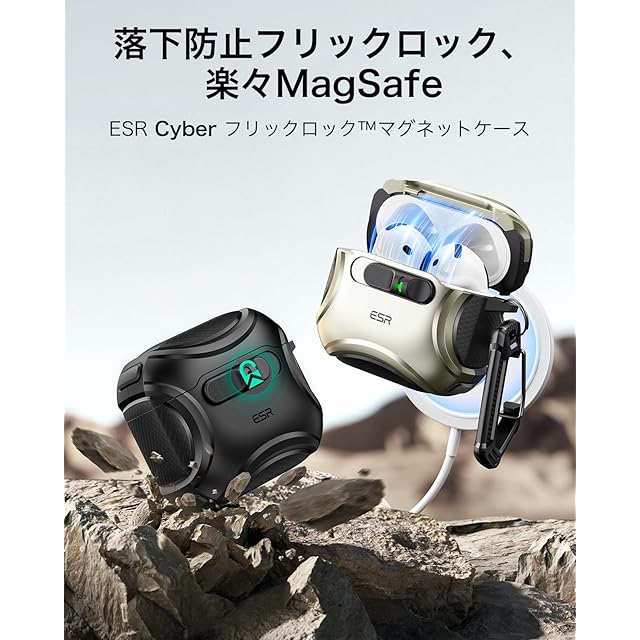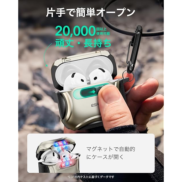 商品名:ESR AirPods 4 ケース(HaloLock) AirPods 第4世代 ケース(2024) (USB-C) 対応 MagSafe 対応 落下防止ロック イージーオープン Cyberシリーズ チタニウム色